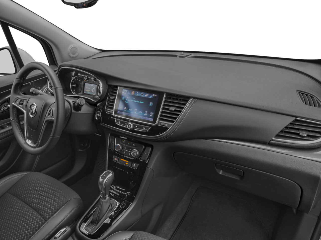 Edmunds.coms review says The 2017 Buick Encore features comfortable front seats and a high seating position that offers a commanding view of the road.. Great Gas Mileage: 33 MPG Hwy.