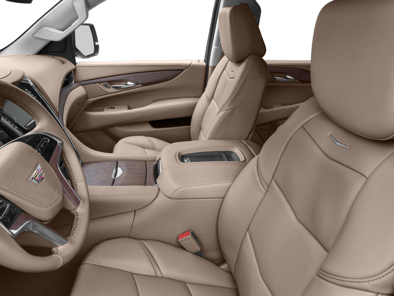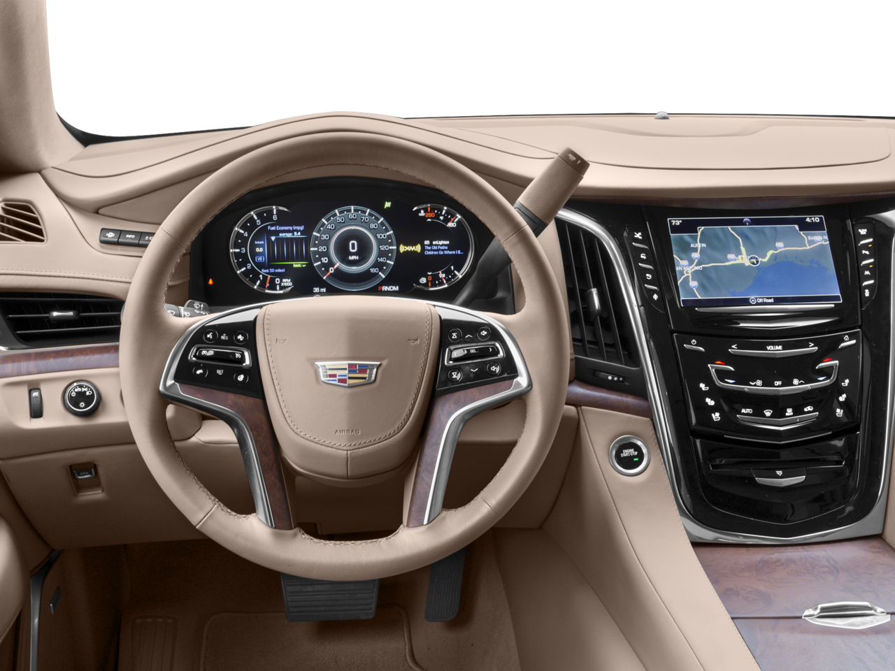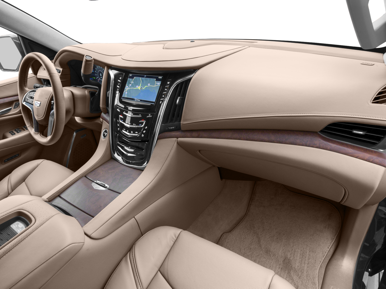 INTERIOR PROTECTION PACKAGE includes (VAV) all-weather floor mats, LPO and (VLI) all-weather cargo mat, CADILLAC CUE INFORMATION AND MEDIA CONTROL SYSTEM WITH EMBEDDED NAVIGATION 8 diagonal color information display featuring touch response, haptic feedback, gesture recognition, Natural Voice Recognition, Phone Integration for Apple CarPlay and Android Auto capability for compatible phone, Collection and Teen Driver. Five USB ports, including one in the articulating storage door/bin and auxiliary audio port (STD), ENGINE, 6.2L V8 WITH ACTIVE FUEL MANAGEMENT Spark Ignition Direct Injection (SIDI) and Variable Valve Timing (VVT), includes aluminum block construction (420 hp [313.2 kW] @ 5600 rpm, 460 lb-ft of torque [621 N-m] @ 4100 rpm) (STD), 8L90 (STD). Cadillac Platinum with CRYSTAL WHITE TRICOAT exterior and TUSCAN BROWN interior features a 8 Cylinder Engine with 420 HP at 5600 RPM*.