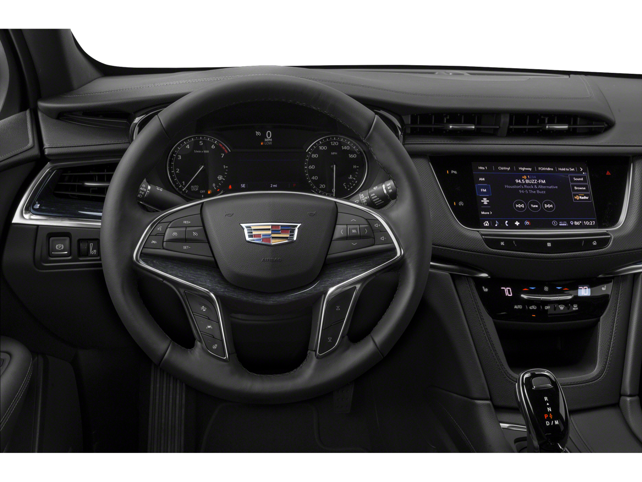 ENHANCED VISIBILITY AND TECHNOLOGY PACKAGE includes (UHS) 8 color gauge cluster, (UV6) Head-Up Display, (UV2) HD Surround Vision, (UKK) Rear Pedestrian Alert, (DRZ) Rear Camera Mirror, (CWA) Rear Camera Mirror Washer and (UKG) Automatic Parking Assist with braking, 20 (50.8 CM) 6-SPLIT SPOKE ALLOY with Polished/Android finish, CLIMATE CONTROL, TRI-ZONE AUTOMATIC with individual climate settings for driver, right-front passenger and rear passengers (includes rear air vents) Includes (KEM) Air Ionizer, (KU9) driver and front passenger ventilated seats and (KA6) heated rear outboard seats.), AM/FM STEREO with connected navigation providing real-time traffic, 8 diagonal color information display, 4 USBs, 2 auxiliary power outlets, personalized profiles for each drivers settings, Natural Voice Recognition, Phone Integration for Apple CarPlay and Android Auto capability for compatible phone, NFC (Near Field Communications) mobile device pairing, Connected Apps and Teen Driver, WITH AUTOMATIC STOP/START (310 hp [231 kW] @ 6600 rpm, 271 lb-ft of torque [366 N-m] @ 5000 rpm), LPO, INTERIOR PROTECTION PACKAGE includes (CAV) All-Weather Cargo Tray, LPO and (VAV) All-Weather Floor Mats, LPO, AUDIO SYSTEM FEATURE, BOSE PERFORMANCE SERIES 14-SPEAKER SYSTEM includes Cadillac speaker grille pattern. Cadillac Premium Luxury FWD with STELLAR BLACK METALLIC exterior and KONA BROWN INTERIOR PACKAGE interior features a V6 Cylinder Engine with 310 HP at 6600 RPM*.