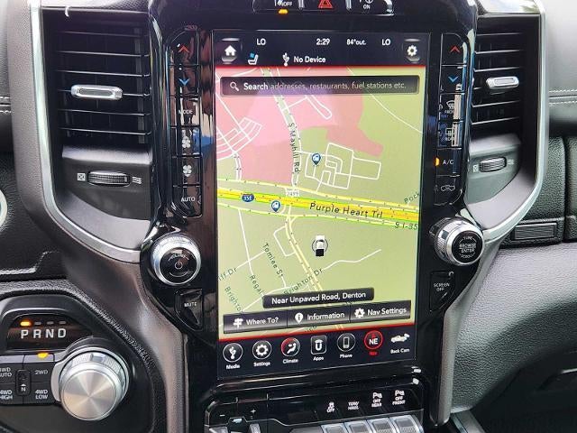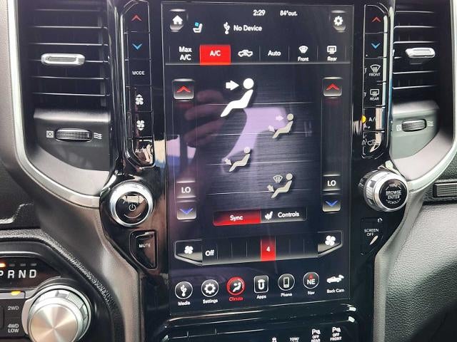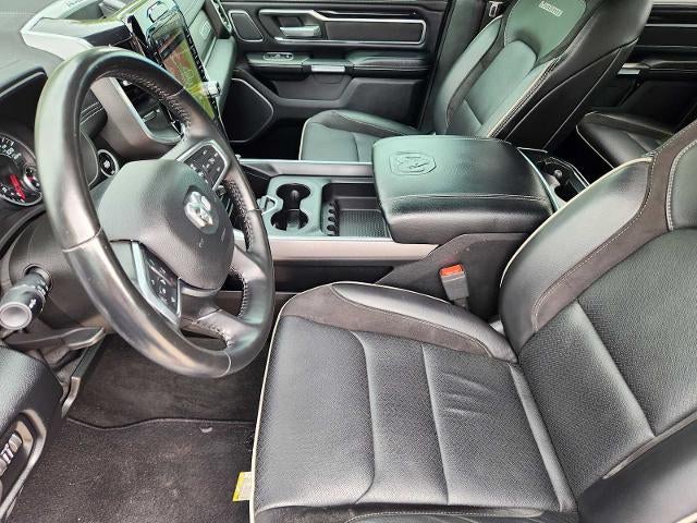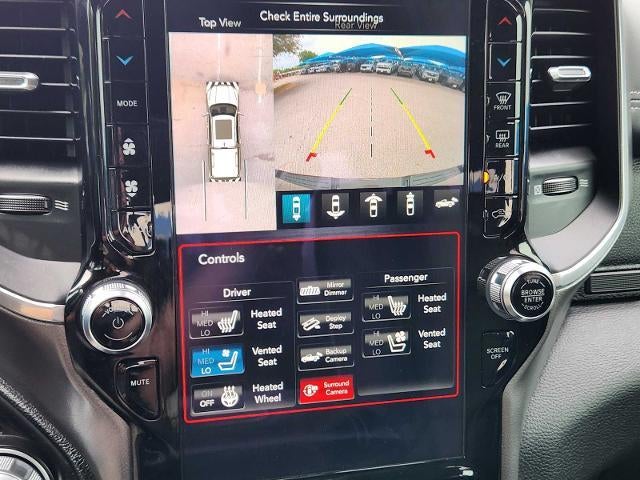 LARAMIE LEVEL 2 EQUIPMENT GROUP Blind Spot & Cross Path Detection, Rain Sensitive Windshield Wipers, ParkSense Front/Rear Park Assist w/Stop, Radio: Uconnect 4C Nav w/8.4 Display, Rear 60/40 Folding Split Recline Seat, Remote Tailgate Release, harman/kardon 19 Speaker Premium Sound, Rear Underseat Compartment Storage, Auto High Beam Headlamp Control, Heated Second Row Seats, Tailgate Ajar Warning Lamp, Foam Bottle Insert (Door Trim Panel), Auto Dimming Exterior Passenger Mirror, NIGHT EDITION Accent Color Premium Power Mirrors, Black Headlamp Bezels, Sport Performance Hood, Body Color Door Handles, MOPAR Black Tubular Side Steps, Black Exterior Truck Badging, Black Interior Accents, Dual Exhaust w/Black Tips, Body Color Front Bumper, Grille Surround 3 Black Texture 2 Black, Auto Dimming Exterior Passenger Mirror, Body Color Rear Bumper w/Step Pads, Black Painted Exterior Mirrors Caps, ENGINE: 5.7L V8 HEMI MDS VVT Active Noise Control System, Heavy Duty Engine Cooling, GVWR: 7,100 lbs, Dual Rear Exhaust w/Bright Tips, HEMI Badge, 220 Amp Alternator, ADVANCED SAFETY GROUP Adaptive Cruise Control w/Stop & Go, Auto High Beam Headlamp Control, Surround View Camera System, Parallel & Perp Park Assist w/Stop, Pedestrian Emergency Braking, Lane Keep Assist, DUAL-PANE PANORAMIC SUNROOF LED Dome/Reading Lamp, Dome Dual LED Reading Lamp, RADIO: UCONNECT 12 W/NAVIGATION SiriusXM Traffic Plus, USB Host Flip, Disassociated Touchscreen Display, HD Radio, For Details, Visit DriveUconnect.com, 1-Yr SiriusXM Guardian Trial, 12 Touchscreen Display, GPS Navigation, SiriusXM Travel Link, 4G LTE Wi-Fi Hot Spot, SiriusXM w/360L, TECHNOLOGY GROUP Heads Up Display, LED CHMSL Lamp, Rearview Autodim Digital Display Mirror, LEATHER TRIMMED BUCKET SEATS Bucket Seats, Center Console Parts Module, Full Length Upgraded Floor Console, PROTECTION GROUP Transfer Case Skid Plate, Steering Gear Skid Plate, Front Suspension Skid Plate, Fuel Tank Skid Plate, Tow Hooks, TRANSMISSION: 8-SPEED AUTOMATIC (8HP75) Ram Laramie with Diamond Black Crystal Pearlcoat exterior and Black interior features a 8 Cylinder Engine with 305 HP at 6400 RPM*.