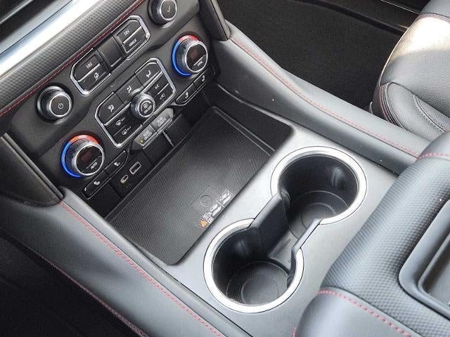 LUXURY PACKAGE includes (WPD) Driver Alert Package content, (UV2) HD Surround Vision, (UKK) Rear Pedestrian Alert, (A45) memory settings, (DXR) outside heated power-adjustable, power-folding, body-color mirrors with driver-side auto-dimming and integrated turn signal indicators, (N38) power tilt and telescopic steering column, (KI3) heated steering wheel, (KA6) second row outboard heated seats, (ATT) second row power 60/40 split-folding bench seats and (AS8) third row power 60/40 split-folding bench seats Vehicles built prior to December 6, 2021, include heated steering wheel. Certain vehicles built on or after December 6, 2021, will be forced to include (00G) Not Equipped with Heated Steering Wheel, which removes heated steering wheel. Vehicles built prior to March 14, 2022 and after, REAR SEAT MEDIA SYSTEM includes dual rear seat-mounted 12.6 diagonal color-touch LCD HD screens, Wi-Fi wireless projection capability, two 2-channel wireless infrared digital headphones with 2 HDMI ports on the back of the center console; compatible with Bluetooth® headphones, TILT-SLIDING with express-open and close and power sunshade, SEATS, SECOND ROW BUCKET, POWER RELEASE, CHEVROLET INFOTAINMENT 3 PREMIUM SYSTEM WITH GOOGLE BUILT-IN 10.2 diagonal HD color touchscreen, includes multi-touch display, AM/FM stereo, Bluetooth® streaming audio for music and most phones; featuring wireless Android Auto and Apple CarPlay capability for compatible phones, advanced voice recognition, in-vehicle apps, personalized profiles for infotainment and vehicle settings.) (STD), HEATED Vehicles built prior to December 6, 2021 and after March 27, 2022, include heated steering wheel. Certain vehicles built on or after December 6, 2021 through March 27, 2022, will be forced to include (00G) Not Equipped with Heated Steering Wheel, which removes heated steering wheel. See dealer for details or the window label for the features on a specific vehicle.), 6.2L ECOTEC3 V8 with Dynamic Fuel Management, Direct Injection and Variable Valve Timing, includes aluminum block construction (420 hp [313 kW] @ 5600 rpm, 460 lb-ft of torque [624 Nm] @ 4100 rpm), 10-SPEED AUTOMATIC electronically controlled with overdrive, includes Traction Select System including tow/haul (Standard with (L84) 5.3L EcoTec3 V8 engine or (L87) 6.2L EcoTec3 V8 engine only.) (STD), DRIVER ALERT PACKAGE includes (UKC) Lane Change Alert with Side Blind Zone Alert and (UFG) Rear Cross Traffic Alert. Chevrolet RST with Dark Ash Metallic exterior and Jet Black/Victory Red interior features a 8 Cylinder Engine with 420 HP at 5600 RPM*.