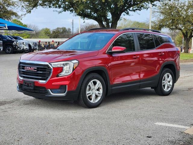 DRIVER CONVENIENCE PACKAGE includes (BTV) Remote Start, (CJ2) dual-zone automatic climate control, (KA1) driver and front passenger heated seats, (AG1) 8-way power driver seat adjuster, (AL9) driver power lumbar control and (V2P) roof-mounted luggage rack side rails (Vehicles built prior to November 15, 2021 and on or after February 28, 2022 through March 13, 2022 and after May 1, 2022 include driver and front passenger heated seats. Certain vehicles built between November 15, 2021 and February 27, 2022 and after March 13, 2022 through May 1, 2022 will be forced to include (00V) Not Equipped with Driver and Front Passenger Heated Seats, which removes driver and front passenger heated seats. Vehicles equipped with (00V) Not Equipped with Driver and Front Passenger Heated Seats will be, AUDIO SYSTEM, 7 DIAGONAL GMC INFOTAINMENT SYSTEM includes multi-touch display, AM/FM stereo, includes Bluetooth® streaming audio for music and most phones; featuring Android Auto and Apple CarPlay capability for compatible phones (STD), ENGINE, SIDI, VVT (170 hp [127.0 kW] @ 5600 rpm, 203 lb-ft of torque [275.0 N-m] @ 2000 - 4000 rpm) (STD), 9-SPEED AUTOMATIC 9T45, ELECTRONICALLY-CONTROLLED WITH OVERDRIVE (STD). GMC SLE with CAYENNE RED TINTCOAT exterior and MEDIUM ASH GRAY / JET BLACK interior features a 4 Cylinder Engine with 170 HP at 5600 RPM*.