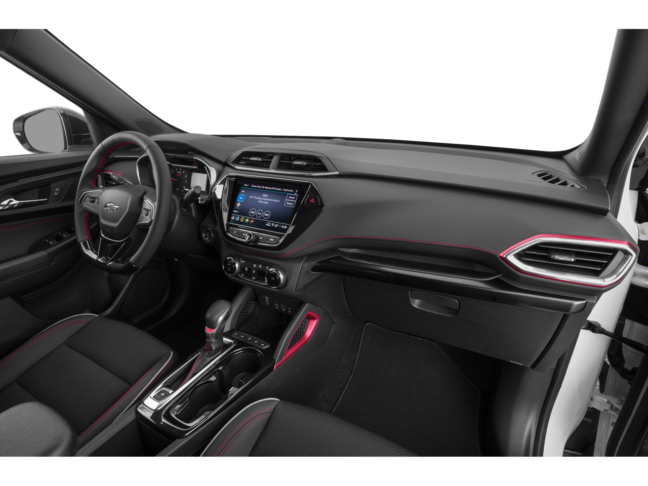 CONVENIENCE PACKAGE includes (C68) automatic climate control air conditioning, (UIJ) 8 diagonal color touchscreen display, (USS) one type-A and one type-C charging only USB ports, (KI6) 120-volt power outlet, (DD8) inside rearview auto-dimming mirror and (DMS) driver and front passenger illuminated vanity mirrors, covered, sliding visors, CONFIDENCE II PACKAGE includes (UD7) Rear Park Assist Beginning with start of production through November 28, 2022, vehicles will be forced to include (00Y) Not Equipped with Rear Park Assist, which removes Rear Park Assist. See dealer for details or the window label for the features on a specific vehicle. Beginning December 26, 2022, certain vehicles will be forced to include (060) Not Equipped with Rear Park Assist, which removes Rear Park Assist. Does not include later dealer retrofit. See dealer for details or the window label for the features on a specific vehicle.), AUDIO SYSTEM, CHEVROLET INFOTAINMENT 3 SYSTEM 7 diagonal color touchscreen, AM/FM stereo. Additional features for compatible phones include: Bluetooth® audio streaming for 2 active devices, voice command pass-through to phone, Apple CarPlay and Android Auto capable. (8 screen when (ZL3) Convenience Package and (ZL5) Driver Confidence Package are ordered.) (STD), ENGINE, ECOTEC 1.3L I3 TURBO DOHC SIDI WITH VARIABLE VALVE TIMING (VVT) (155 hp [115 kW] @ 5600 rpm, 174 lb-ft torque [236 N-m] @ 1600 rpm) (STD), CONTINUOUSLY VARIABLE (CVT) (STD). Chevrolet RS with Mosaic Black Metallic exterior and Jet Black with Red accents interior features a 3 Cylinder Engine with 155 HP at 5600 RPM*.