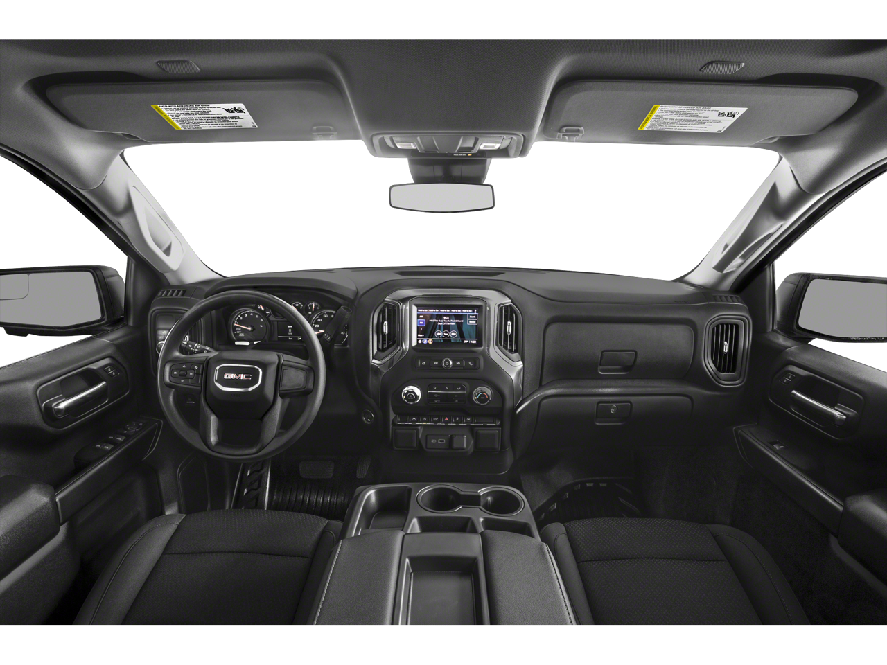 ENGINE, 5.3L ECOTEC3 V8 (355 hp [265 kW] @ 5600 rpm, 383 lb-ft of torque [518 Nm] @ 4100 rpm); featuring Dynamic Fuel Management (Includes (KW7) 170-amp alternator and (MHT) 10-speed automatic transmission. CONVENIENCE PACKAGE includes (QT5) EZ Lift power lock and release tailgate, (AKO) tinted glass, (UF2) LED cargo bed lighting, (C49) rear-window defogger, (K34) cruise control and (DLF) outside power mirrors. 18 X 8.5 (45.7 CM X 21.6 CM) 6-SPOKE MACHINED ALUMINUM with Dark Grey Metallic accents, GLASS, MIRRORS, GMC INFOTAINMENT SYSTEM WITH 7 DIAGONAL COLOR TOUCH-SCREEN, AM/FM STEREO with seek-and-scan and digital clock, includes Bluetooth® streaming audio for music and select phones; featuring wired Android Auto and Apple CarPlay capability for compatible phones (STD), TRANSMISSION, (COLUMN SHIFTER) ELECTRONICALLY CONTROLLED with overdrive and tow/haul mode. Includes Cruise Grade Braking and Powertrain Grade Braking. GMC Pro with ONYX BLACK exterior and JET BLACK interior features a 8 Cylinder Engine with 310 HP at 5600 RPM*.