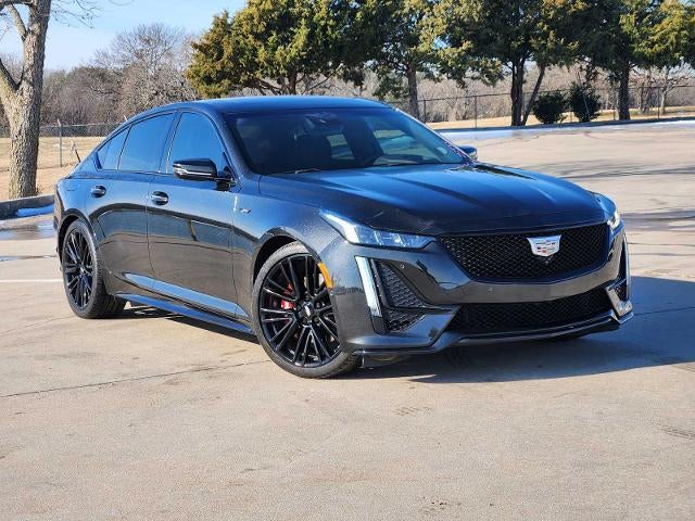 PREMIUM PACKAGE includes (CWM) Technology Package, (HME) Lighting Package, (Y6F) Climate Package, (AF6) driver power lumbar massage and (AKE) front passenger power lumbar massage, 20 (50.8 CM) ALLOY WHEELS WITH GLOSS BLACK FINISH (Includes (QES) 255/35ZR20 all-season, run-flat tires. PARKING PACKAGE includes (KEM) Air Ionizer, (DRZ) Rear Camera Mirror and (TL3) Hands-Free Decklid Release Includes (UKK) Rear Pedestrian Alert, (UKG) Automatic Parking Assist with braking, (UV2) HD Surround Vision, (XVR) Surround Vision Recorder and (DXR) outside heated power-adjustable, power-folding mirrors. SUNROOF, ULTRAVIEW, DUAL PANE spans both rows of seating, CLIMATE PACKAGE includes (KA1) heated driver and front passenger seats, (KU9) ventilated driver and front passenger seats and (KI3) heated steering wheel, TECHNOLOGY PACKAGE includes (UDV) 12 diagonal HD color reconfigurable driver cluster and (UV6) Head-Up Display, MIRRORS, OUTSIDE HEATED POWER-ADJUSTABLE, BODY-COLOR, POWER-FOLDING AND DRIVER-SIDE AUTO-DIMMING with integrated turn signal indicators, CADILLAC USER EXPERIENCE WITH EMBEDDED NAVIGATION AM/FM stereo with connected navigation providing real-time traffic, 10 diagonal HD color information display, 3 USBs, personalized profiles for each drivers settings, Natural Voice Recognition, Phone Integration for Wireless Apple CarPlay/Wireless Android Auto capability for compatible phone, Connected Apps and Teen Driver, SIDI with Automatic Stop/Start (360 hp [268 kW] @ 5400 rpm, 405 lb-ft of torque [550 N-m] @ 2350-4000 rpm) (STD), 10-SPEED AUTOMATIC (STD). Cadillac CT5-V with BLACK DIAMOND TRICOAT exterior and JET BLACK W/ JET BLACK ACCENTS W/ LEATHER SEATING SURFACES interior features a V6 Cylinder Engine with 360 HP at 5400 RPM*.
