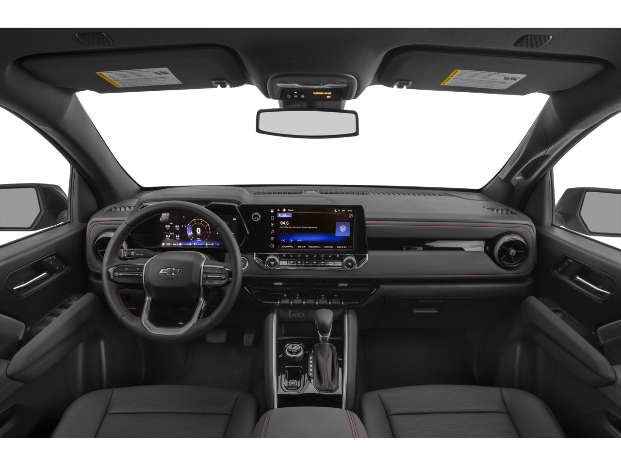 Z71 CONVENIENCE PACKAGE II includes (CJ2) Dual-zone automatic climate control, (N37) Tilt and Telescopic steering column, (PPA) EZ lift and lower tailgate, (A2X) 8-way power driver seat, (AL9) Power driver seat lumbar, (KA1) Heated front seats, (BTV) Remote start, (DD8) Auto dimming inside rearview mirror, (BPC) StowFlex Tailgate, (BDR) Locking Cylinder and (K4C) Wireless charging, POWER SLIDING GLASS WITH MANUAL SHADE, TECHNOLOGY PACKAGE includes (KSG) Adaptive Cruise Control, (UKK) Rear Pedestrian Alert and (UV2) HD Surround Vision, BOSE PREMIUM 7-SPEAKER SYSTEM, SAFETY PACKAGE includes (UKI) Blind Zone Steering Assist, (UFB) Rear Cross Traffic Braking, (UD7) Rear Park Assist - With (ZL6) Advanced Trailering Package, includes (UKW) Blind Zone Steering Assist with Trailering, TURBOMAX (310 hp [231 kW] @ 5600 rpm, 430 lb-ft of torque [583 Nm] @ 3000 rpm) (STD), 8-SPEED AUTOMATIC (STD), HEAVY-DUTY includes trailer hitch and 7-pin connector. Chevrolet 4WD Z71 with Black exterior and Jet Black/Adrenaline Red interior features a 4 Cylinder Engine with 310 HP at 5600 RPM*.