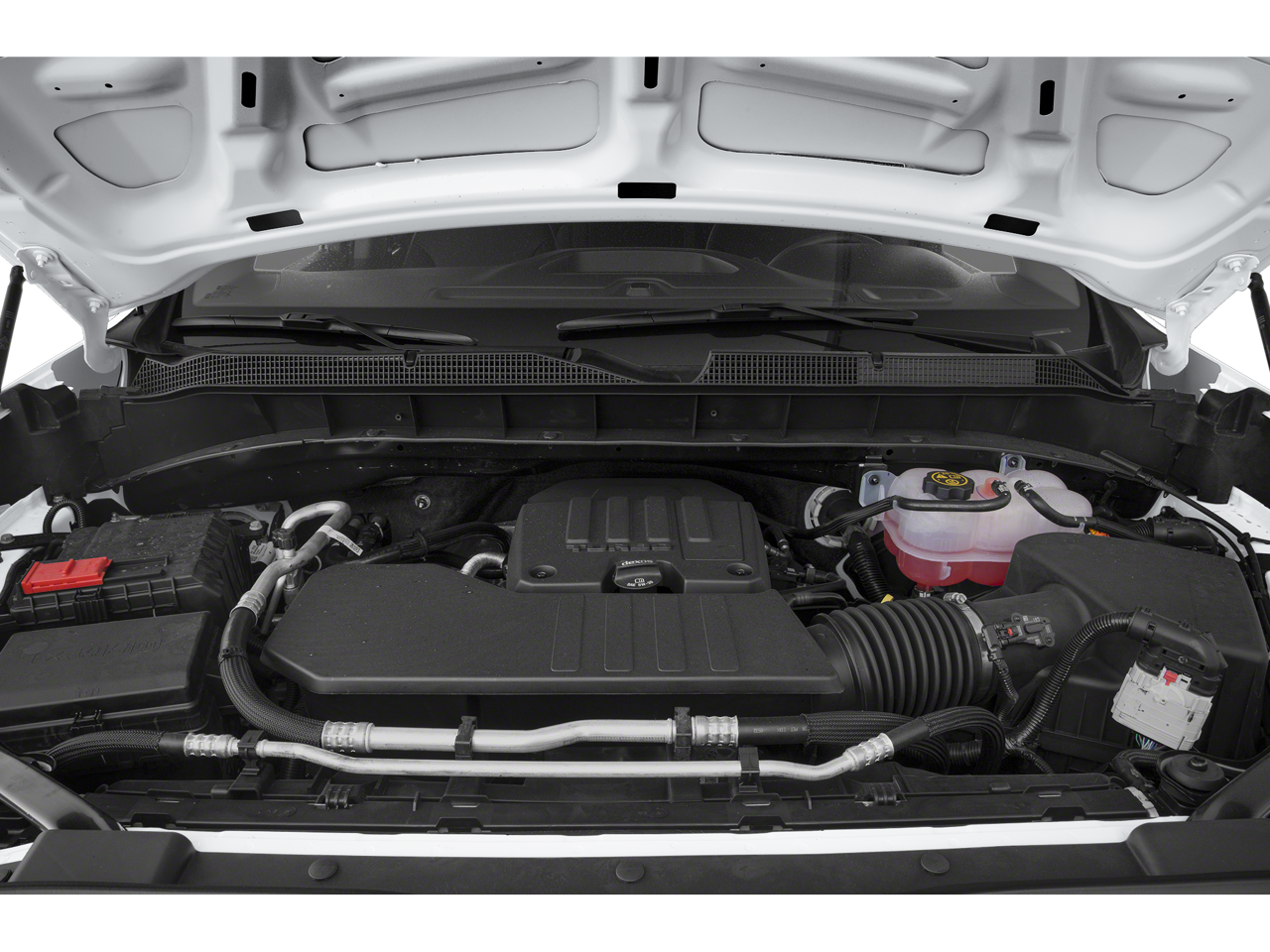 TECHNOLOGY PACKAGE includes (DRZ) Rear Camera Mirror and (UV6) 15 Diagonal Head-Up Display (Includes (UVN) Bed View Camera. LTZ CONVENIENCE PACKAGE II includes (A48) rear sliding power window, (UG1) Universal Home Remote, (KA6) Rear Heated Outboard Seats, and (KSG) Adaptive Cruise Control-Camera, CHEVROLET INFOTAINMENT 3 PREMIUM SYSTEM with Google built-in compatibility (select service plan required, terms and limitations apply) including navigation capability, 13.4 diagonal HD color touchscreen, includes multi-touch display, AM/FM stereo, Bluetooth® streaming audio for music and most phones; featuring Wireless Apple CarPlay and Wireless Android Auto capability for compatible phones, advanced voice recognition, in-vehicle apps, personalized profiles for infotainment and vehicle settings (STD), 5.3L ECOTEC3 V8 (355 hp [265 kW] @ 5600 rpm, 383 lb-ft of torque [518 Nm] @ 4100 rpm); featuring available Dynamic Fuel Management that enables the engine to operate in 17 different patterns between 2 and 8 cylinders, depending on demand, to optimize power delivery and efficiency (STD), 10-SPEED AUTOMATIC with Electronic Transmission Range Selector, (ETRS), electronically controlled with overdrive, tow/haul mode and steering column paddle shifters. Includes Cruise Grade Braking and Powertrain Grade Braking (STD). Chevrolet LTZ with Summit White exterior and Jet Black interior features a 8 Cylinder Engine with 355 HP at 5600 RPM*.
